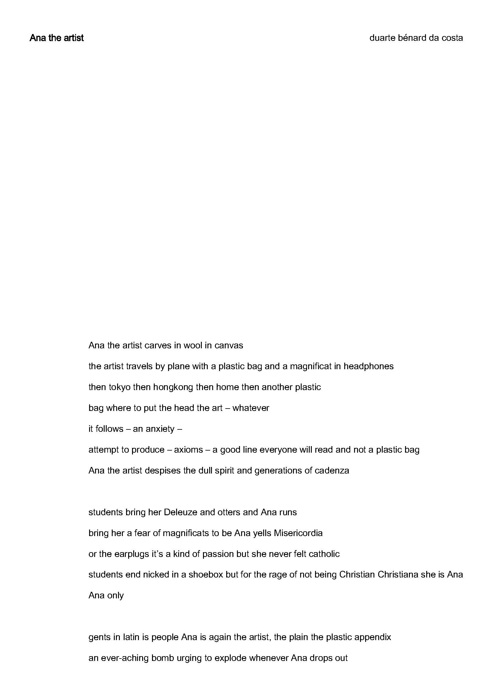 Joana: Sobre o teu poema "Ana the artist", penso na representação da ideia de ser-se forçosamente ingénuo. Esta personagem, a Ana, é representativa?